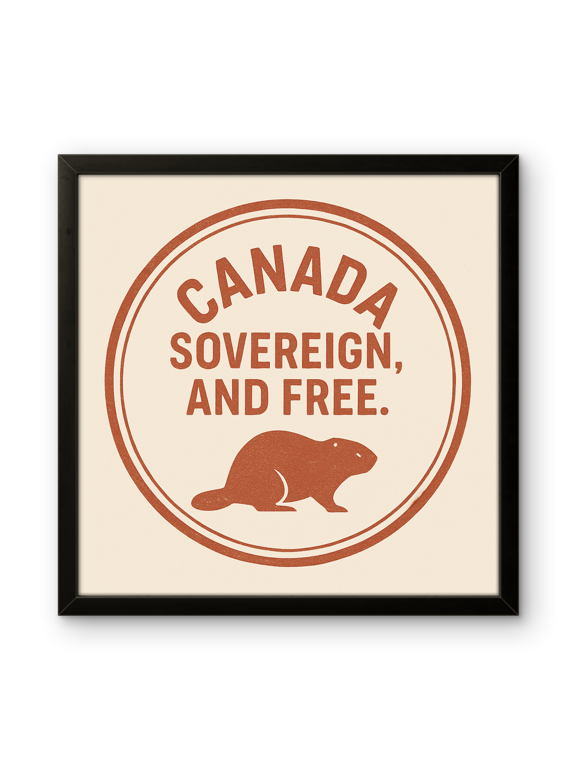 Framed and Ready to Hang. A bold declaration of independence, pride, and identity — this vintage-style print celebrates the spirit of Canada with a classic emblem feel. Featuring a noble beaver and the words “Canada. Sovereign, and Free.”, it’s a quiet roar for every wall that believes in a strong, self-governed, and united nation.
