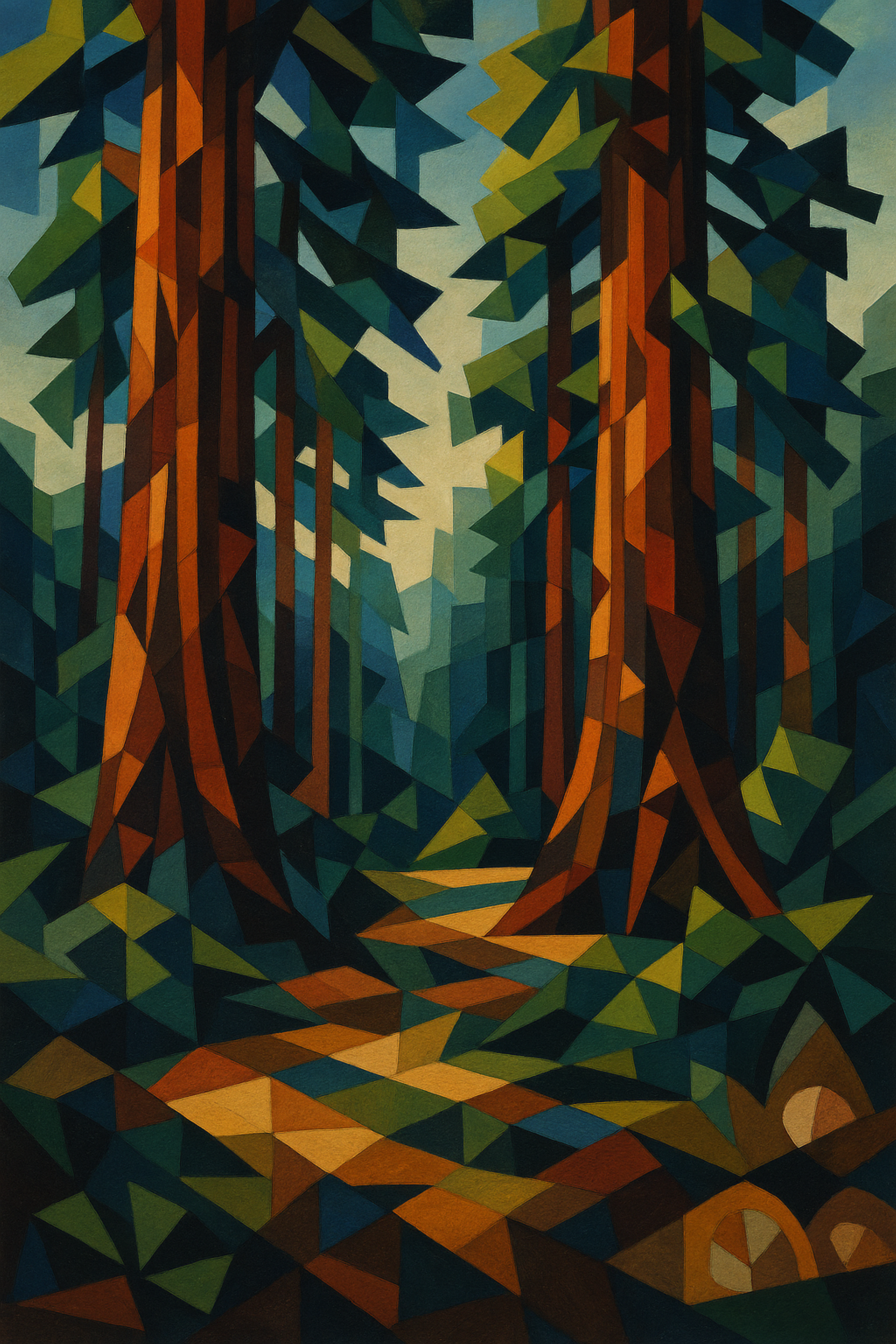 The Majestic Redwoods of British Columbia," in the Modernist style.