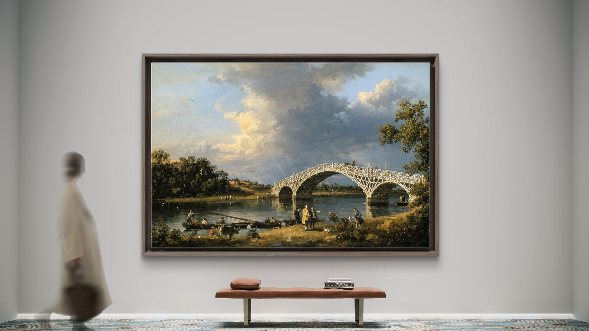 Step into the luminous world of Giovanni Antonio Canal—better known as Canaletto—with our meticulously restored reproduction of Old Walton Bridge (1754), a masterwork that captures the innovative engineering and pastoral beauty of the English countryside along the Thames.