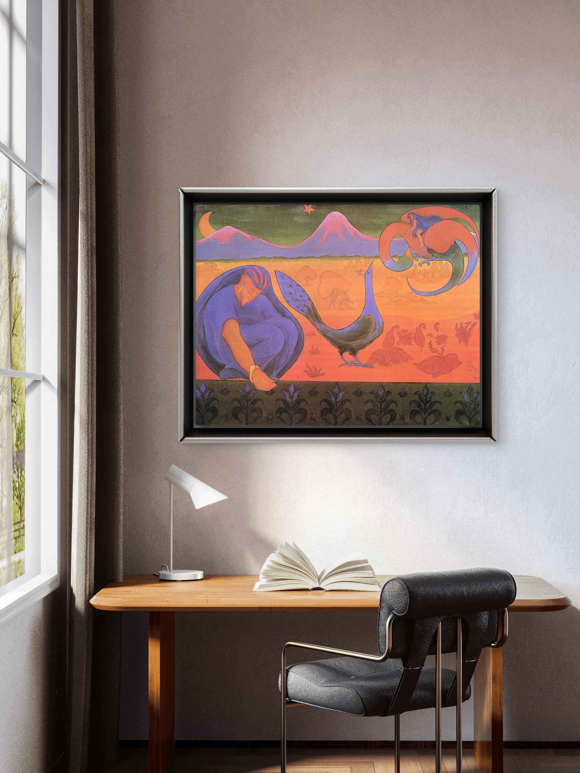 A key figure in the Post-Impressionist Nabis group, Paul Ranson created this vibrant and symbolic landscape in 1890. The painting synthesizes intense color, simplified forms, and rich symbolism to create a deeply spiritual and decorative scene. Influenced by Japanese prints and the work of Paul Gauguin, Nabic Landscape is a powerful statement on the Nabis' quest to express personal aesthetic metaphors and abstract ideas. This piece is a must-have for collectors interested in the foundations of modern art and Art Nouveau.