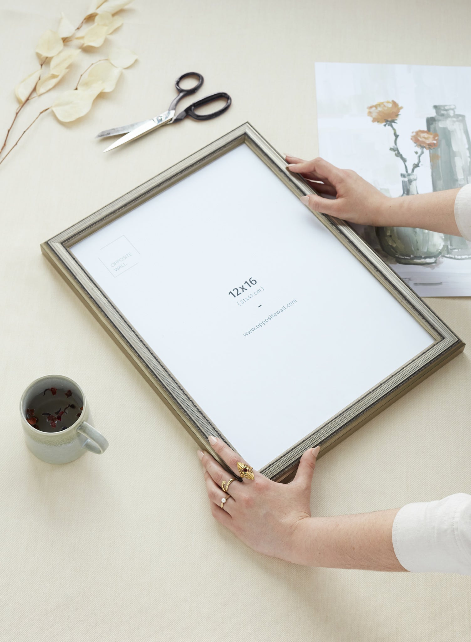 With its intricate antique silver coating and elegant molding, the Rafaella frame tells a story all on its own… It’s so gorgeous, it almost doesn’t need to be paired with a print!